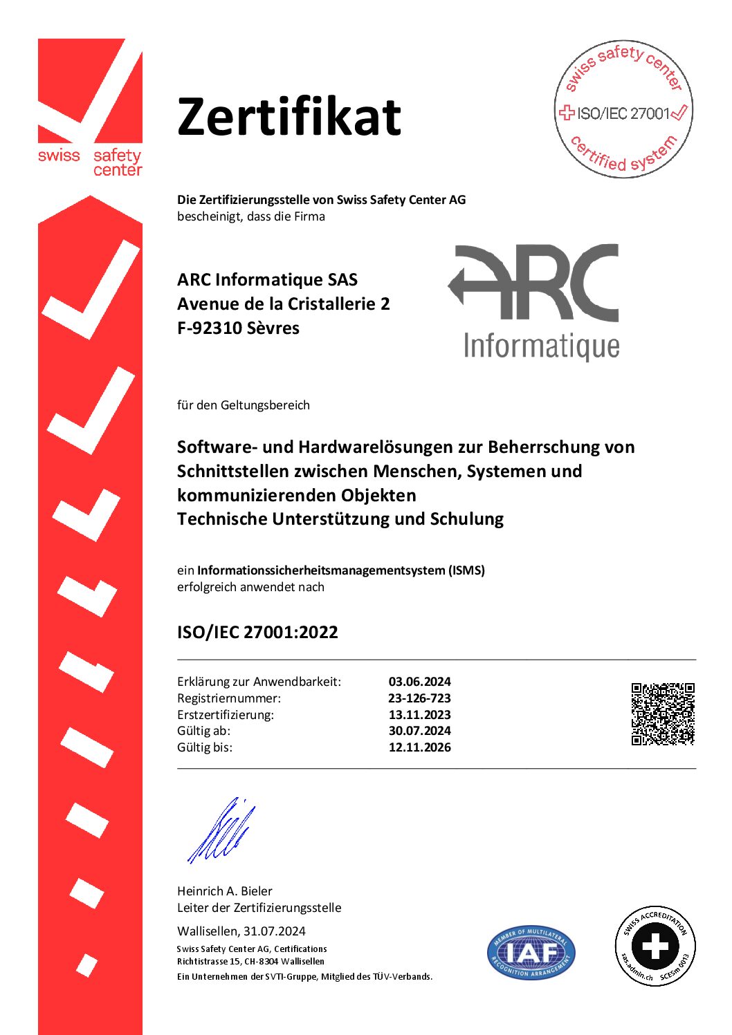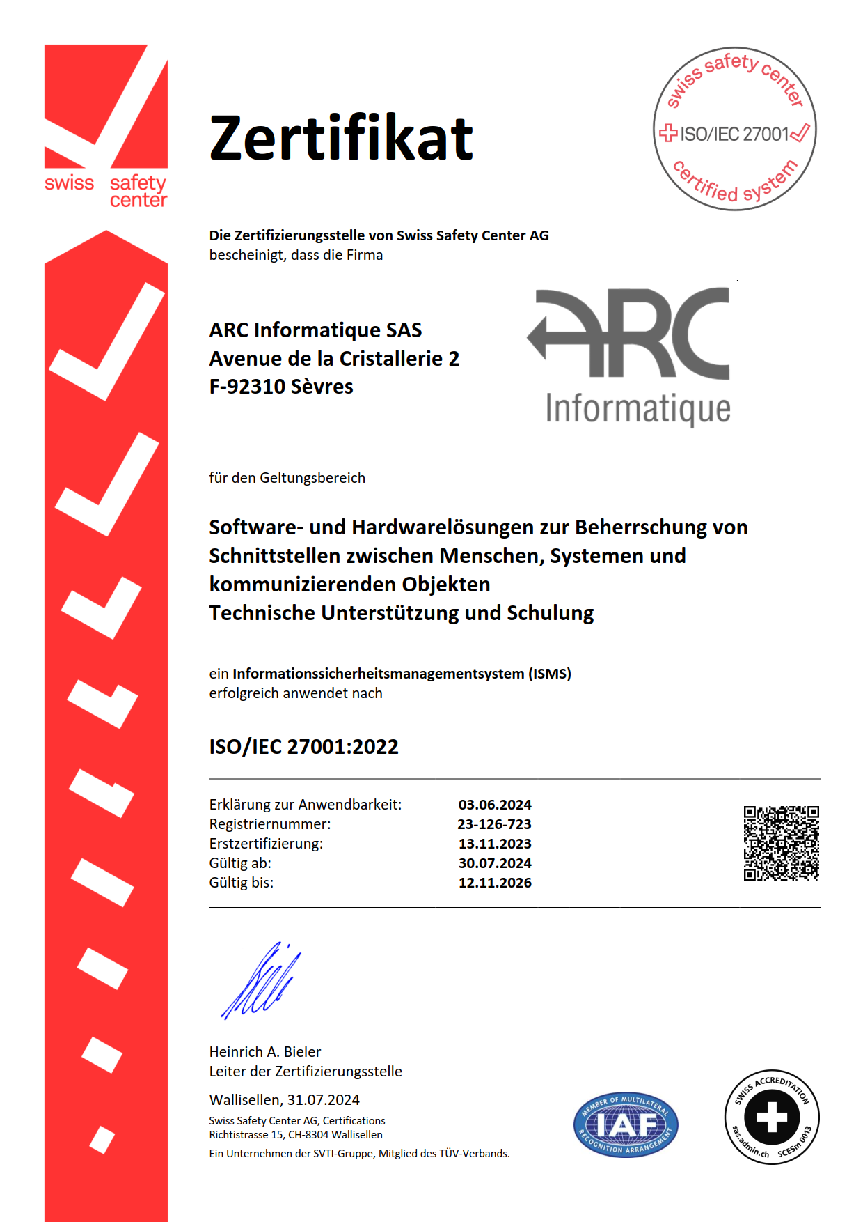 ARC Informatique 获得了ISO 27001认证,这是全球公认的信息安全管理体系(ISMS)标准。